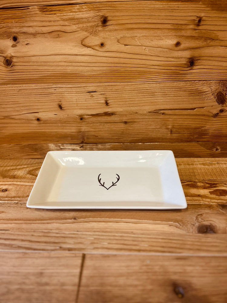 Bicchiere, dispenser o piattino in ceramica con disegno corna stilizzate.