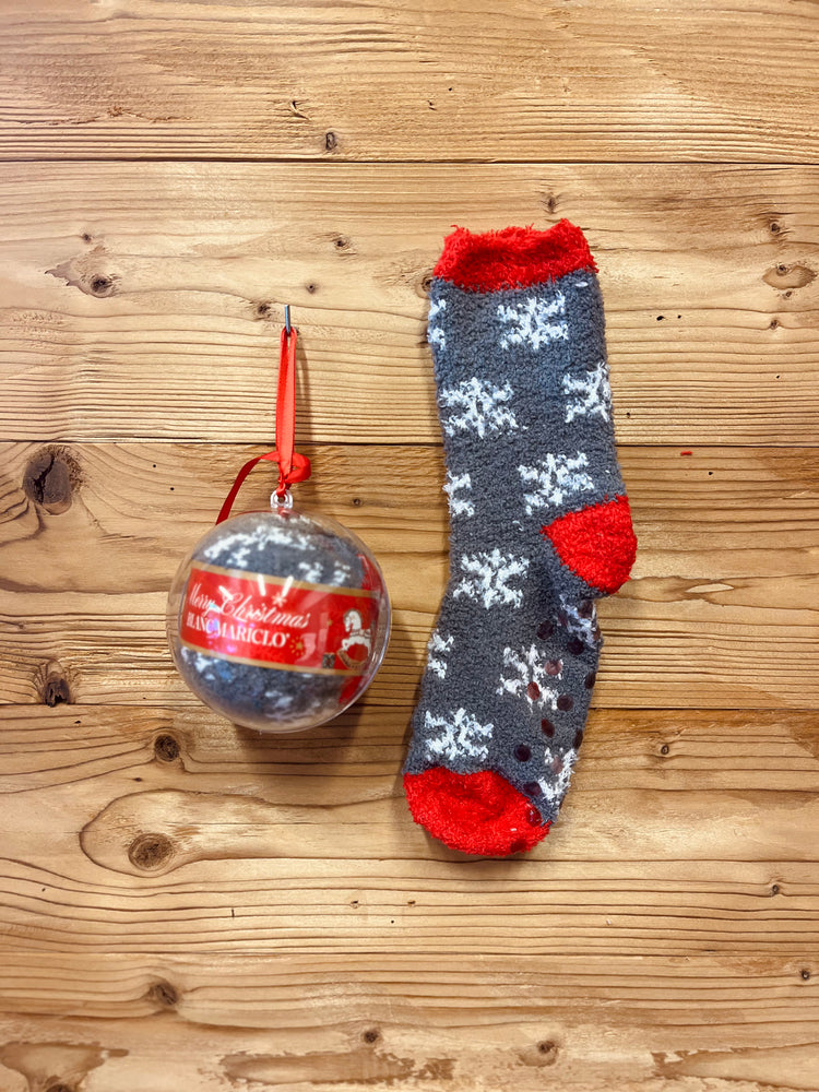 Simpatica idea regalo, globo contenente un paio di calzini morbidissimi con sotto l'antiscivolo.