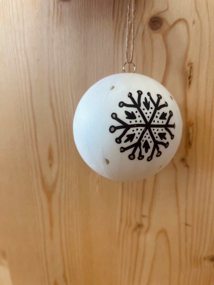 Globi sui toni del nero, bianco e oro. Laccetto in cordino compreso.