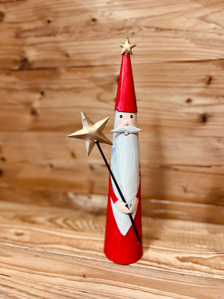 Figura di Babbo Natale d'appoggio con bacchetta.