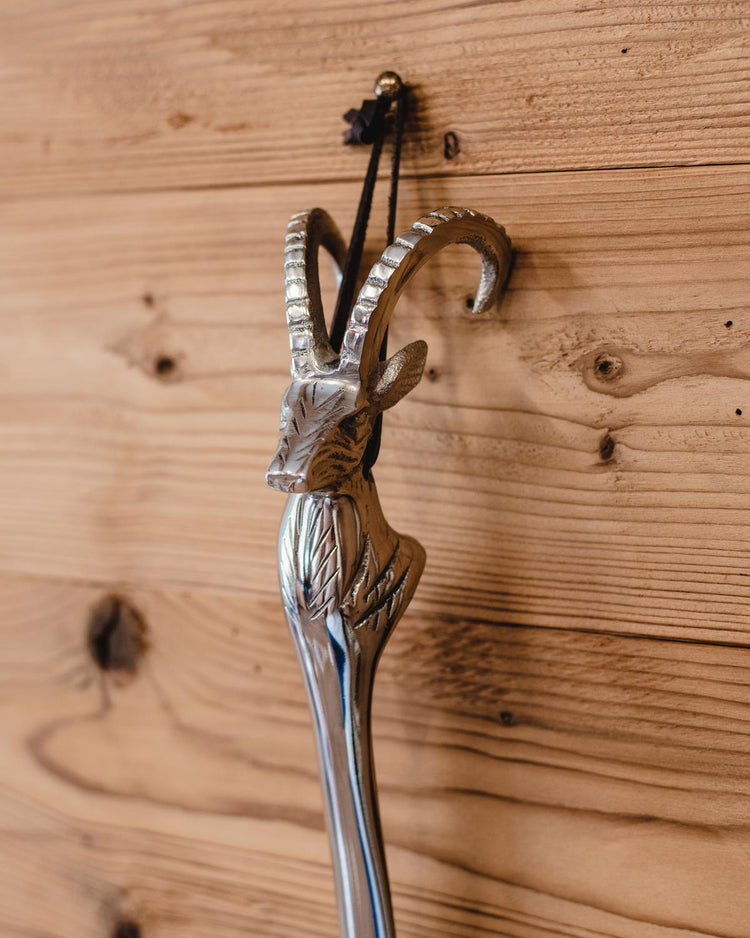 Calzascarpe con Testa di Stambecco elegante e lineare, compreso di laccetto in pelle per appenderlo.