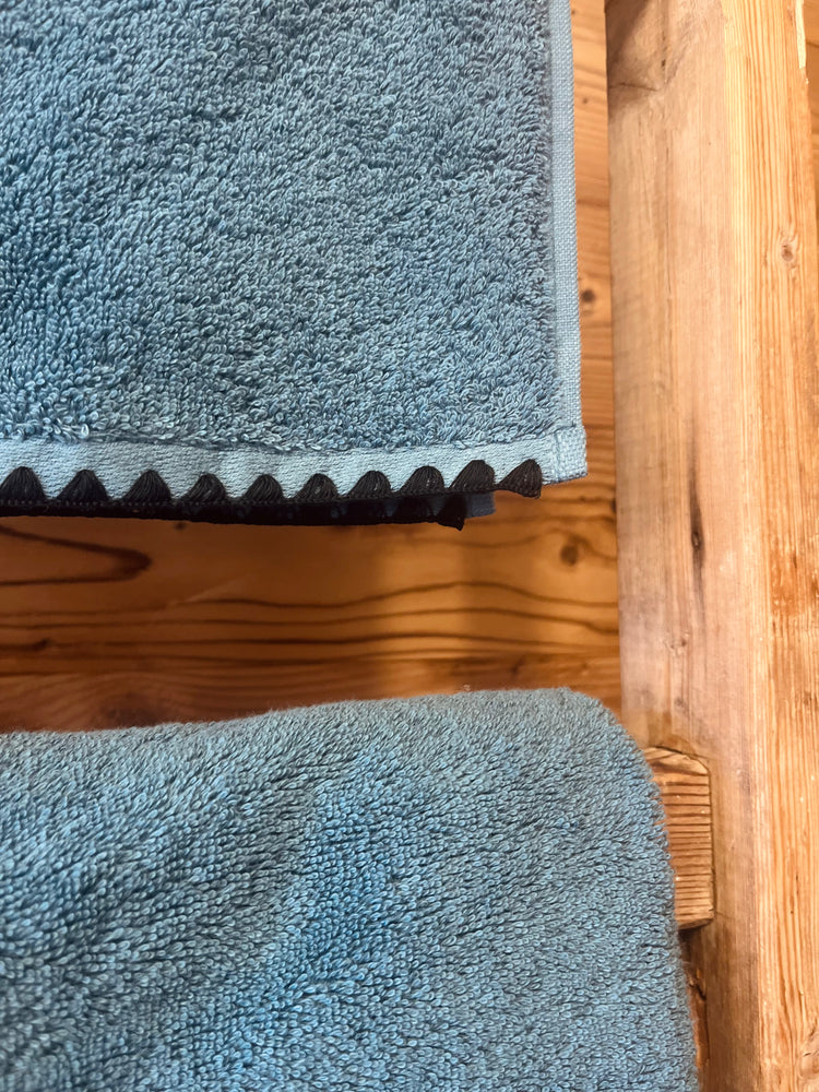 Asciugamani in morbida spugna con punto a conchiglia per dargli un tocco elegante.