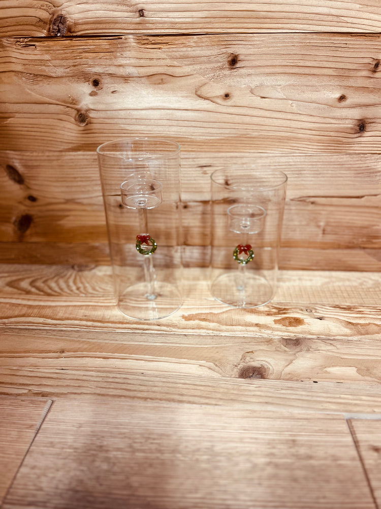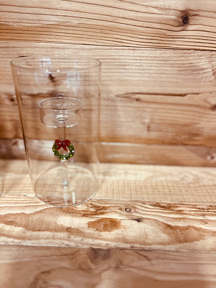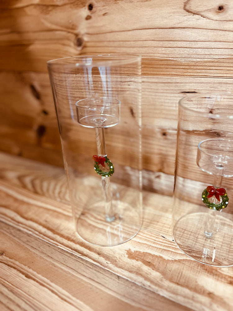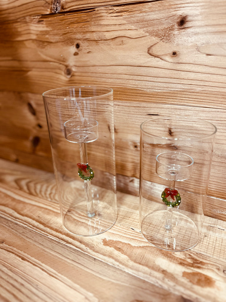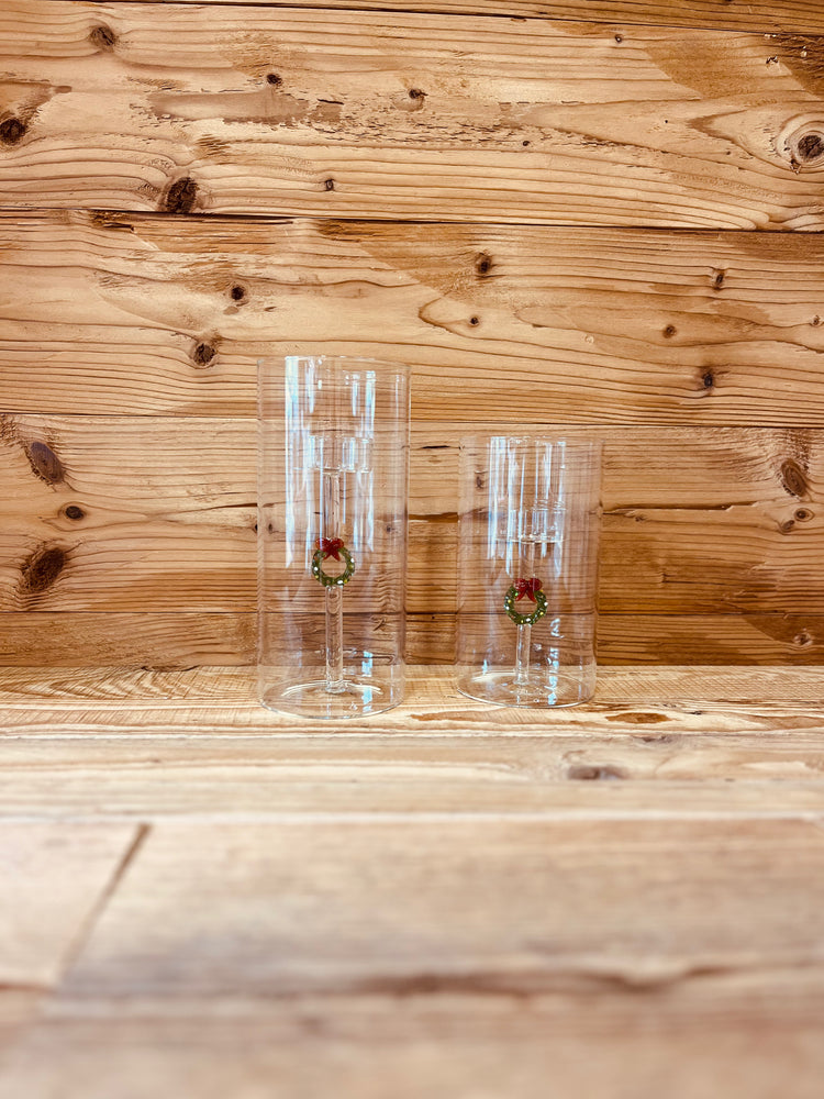 Cilindro leggero ed elegante con alzata per tealight e ghirlanda in vetro decorativa.
