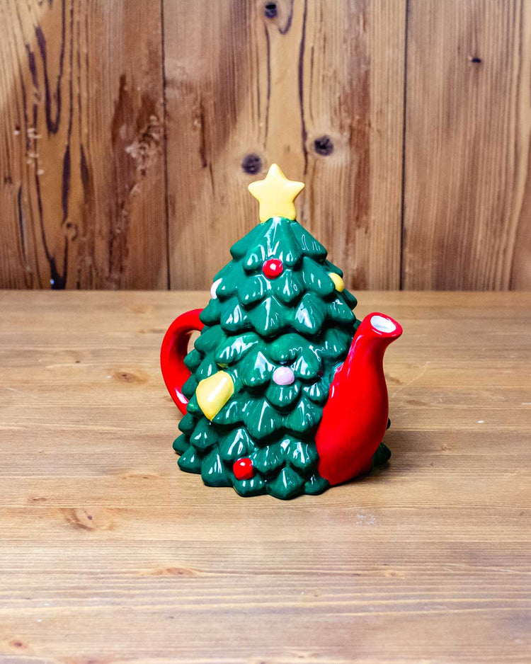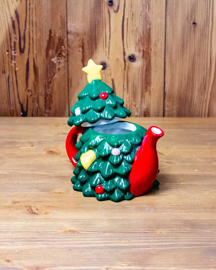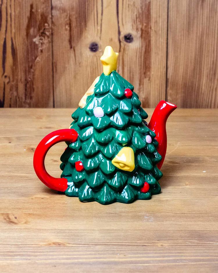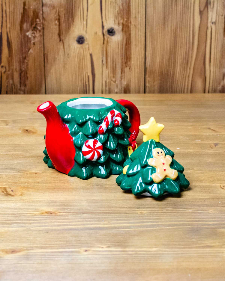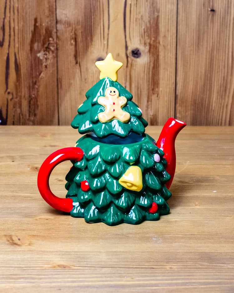 Alberello di natale, teiera tenera e nel perfetto stile natalizio.