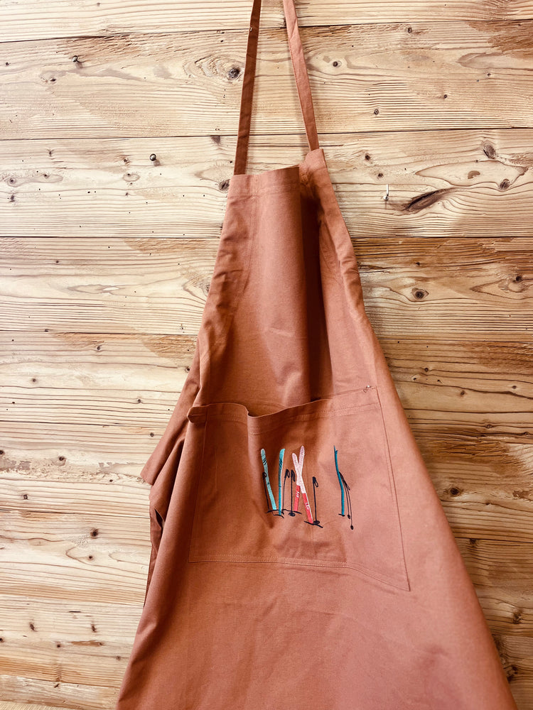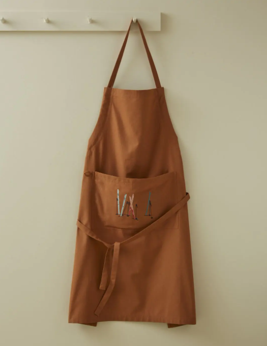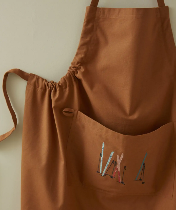 Grembiule in cotone con ricami sulla tasca davanti.