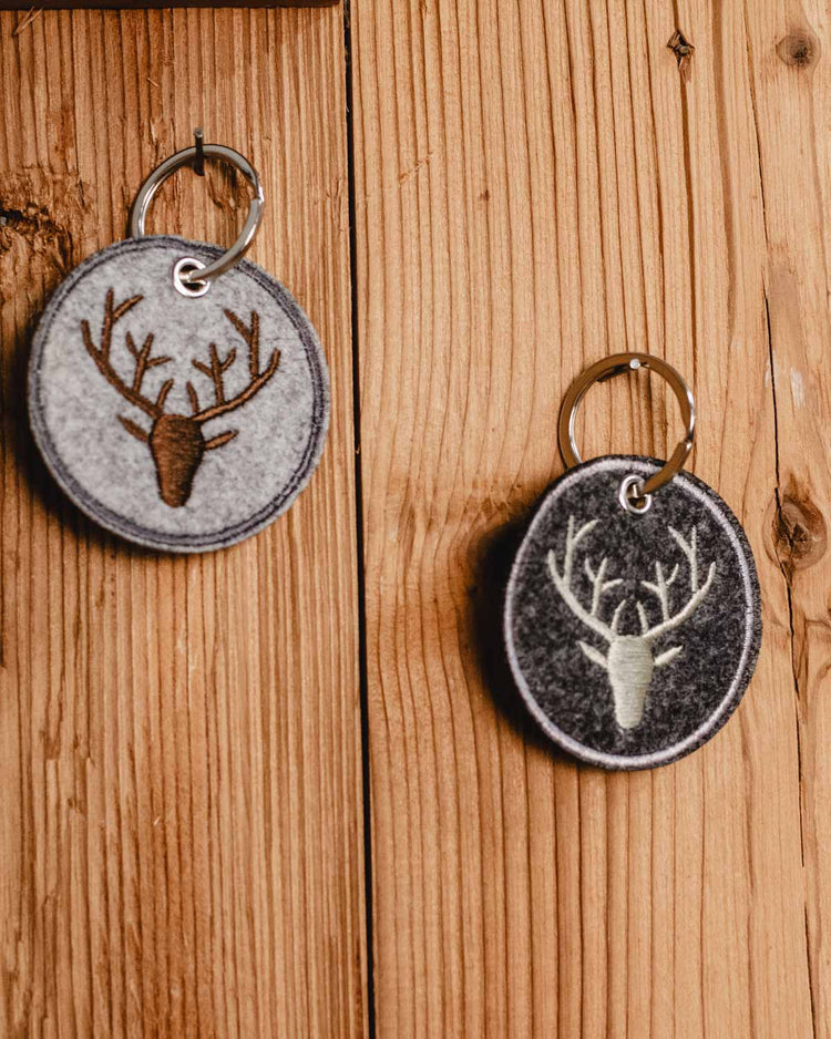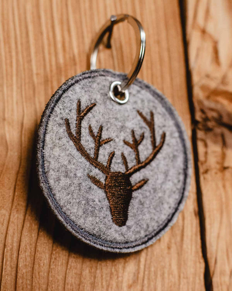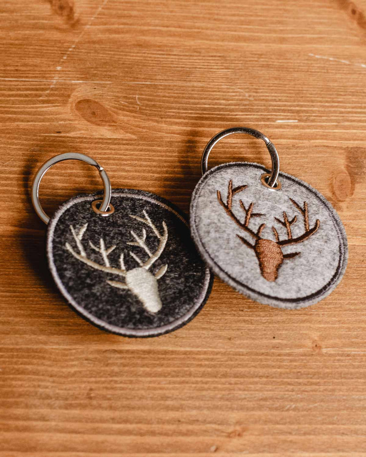 Portachiavi in feltro con testa di cervo ricamata in contrasto per tenere le chiavi in tutto lo stile montano.
