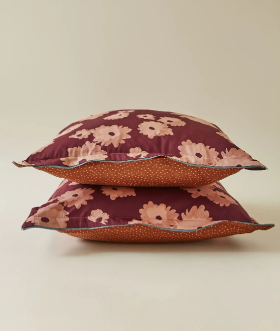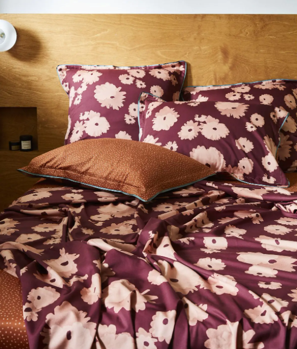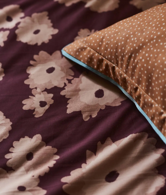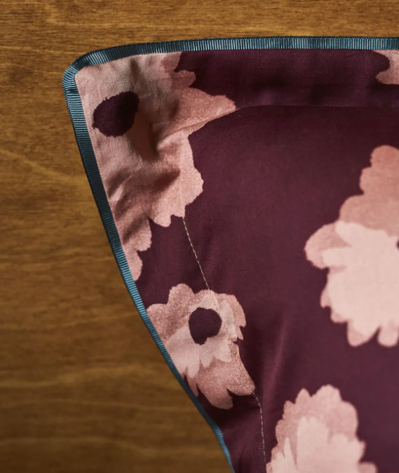 Il completo letto in raso stampato si distingue per una scelta di colori ricchi ed avvolgenti.