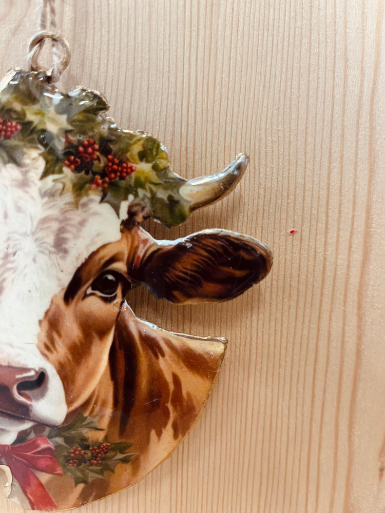 Decorazione a forma di mucca con laccetto in corda compreso.