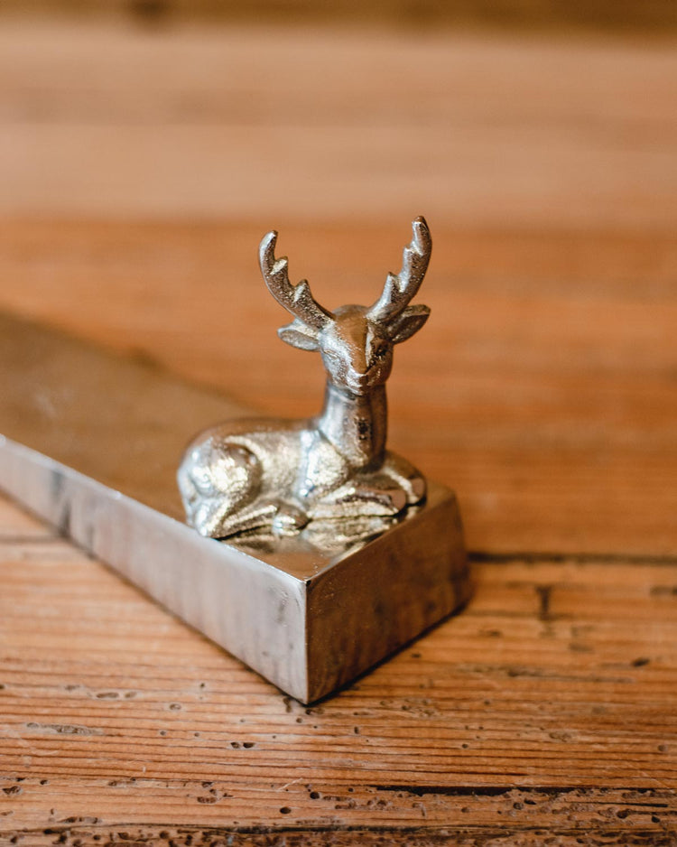Ferma porta cuneo con decorazione cervo sdraiato e parte inferiore antiscivolo.
