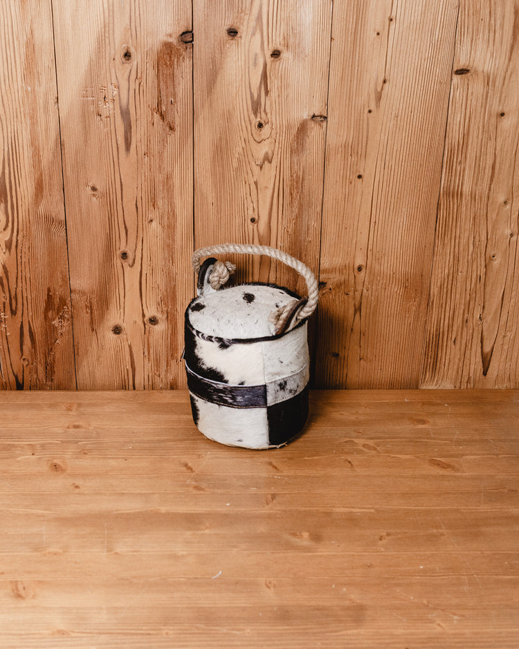 Caratteristico ferma porta in cavallino con manico in corda cuciture a contrasto. la base è in tessuto.