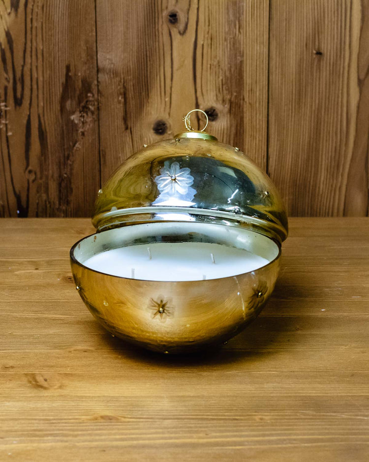 Candela a forma di globo oro con rifiniture più marcate oro.