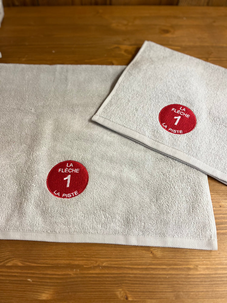 Coppia di asciugamani in 100% cotone con ricamati i nomi di famose piste da sci.