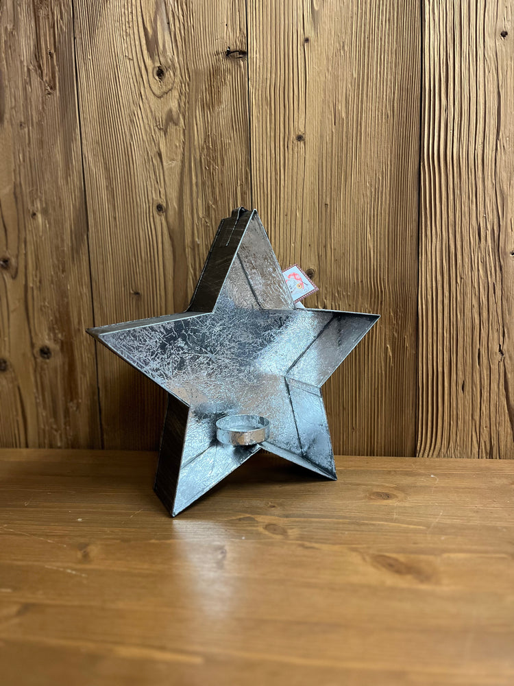 Stella decorativa d'appoggio o da appendere con base interna portacandela.