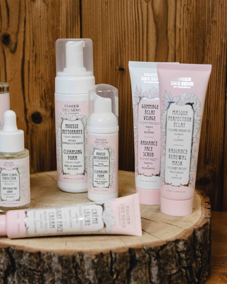 La collezione viso con la peonia francese, acido ialuronico e argilla rosa pone questo indispensabile al centro di ciascuna delle sue formule.
