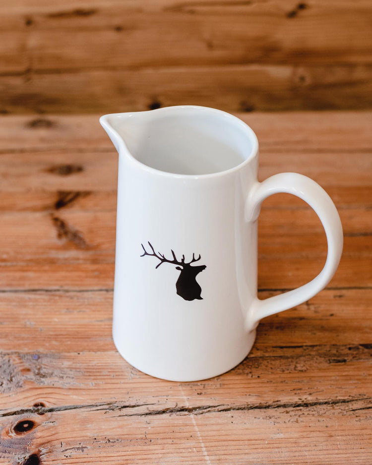 Brocca in ceramica con disegno testa di cervo stilizzata.