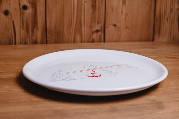 Set di piatti in ceramica con motivo cabinovie, disponibili piatti fondi, piani e da dessert. Acquistabili separatamente oppure kit completo.
