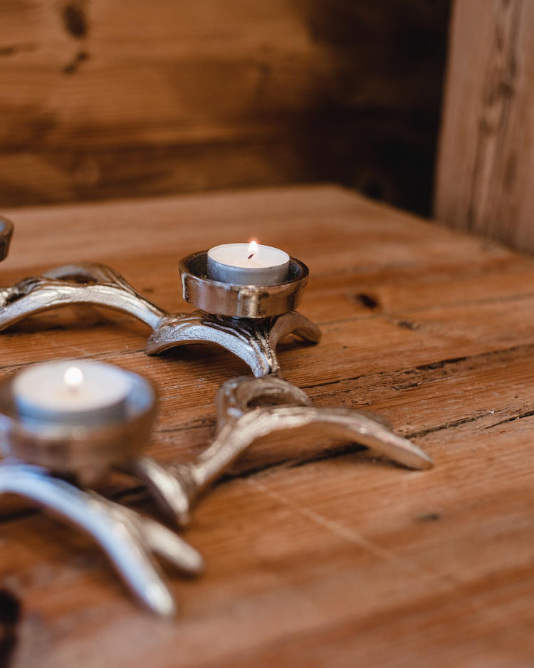 Porta candele circolare con motivo corna di cervo intrecciate.