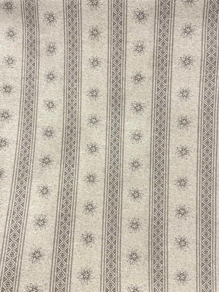 Tessuto per tappezzerie o accessori deco con disegni geometrici e stelle alpine.