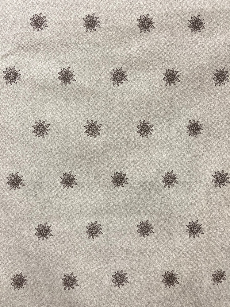 Tessuto per tappezzerie o accessori deco con disegno all over stella alpina.