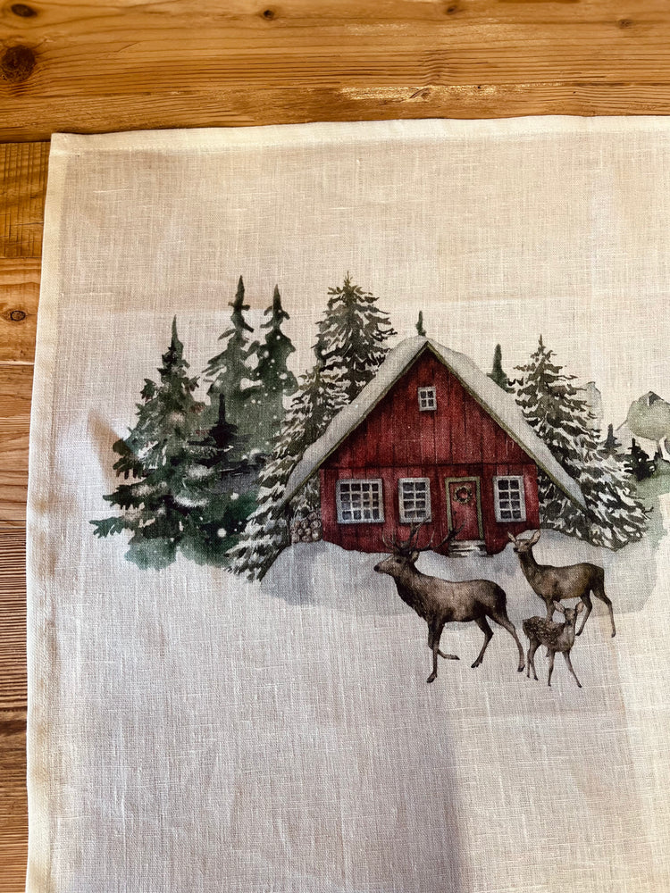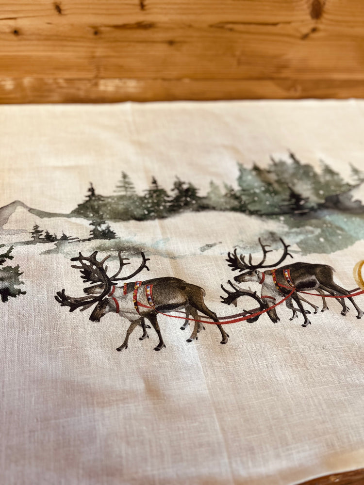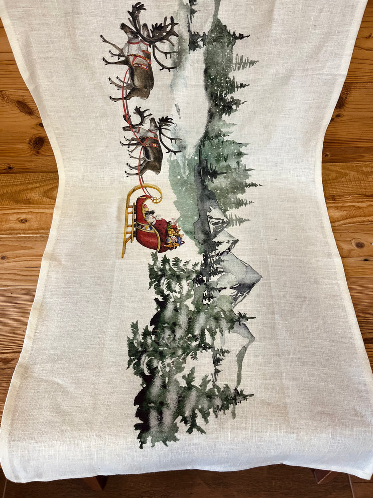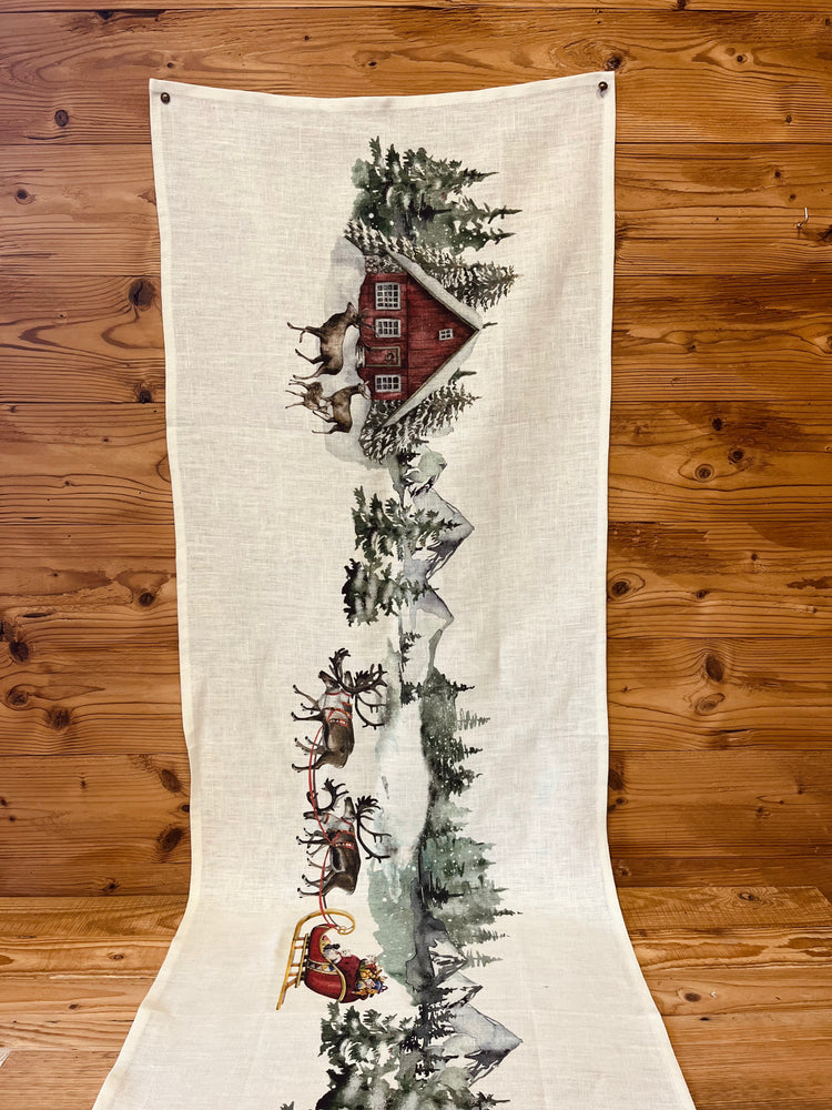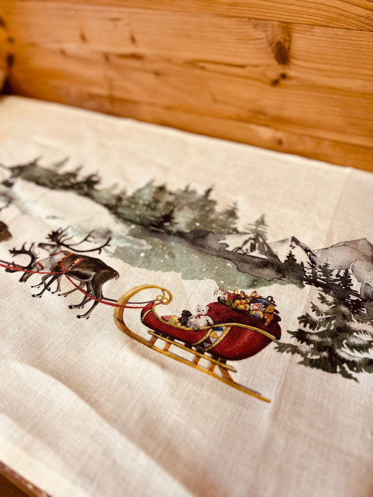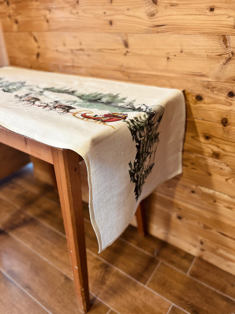Runner in lino con motivo natalizio effetto dipinto