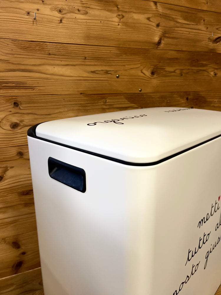 - Misura: H 54 x L 46 x P 32 cm / Capacità organico 15 L / residuo 25 L