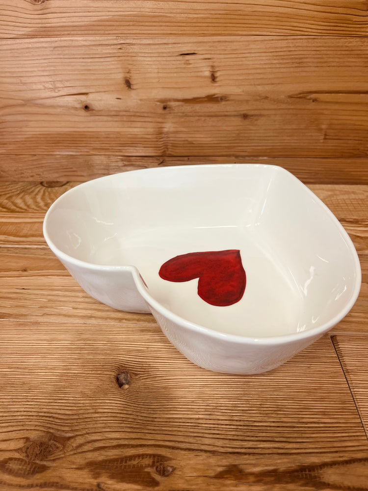 Dolce pirofila a forma di cuore con all'interno un cuoricino effetto acquerello.