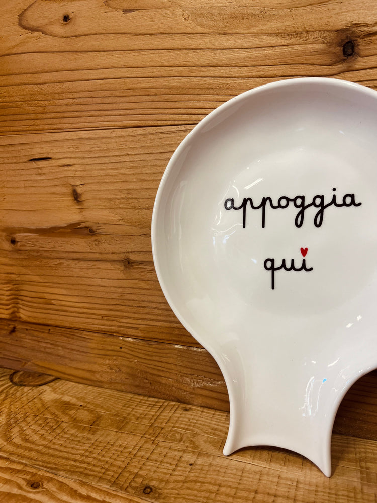 Poggia mestoli in gres con cuoricino rosso e scritta.