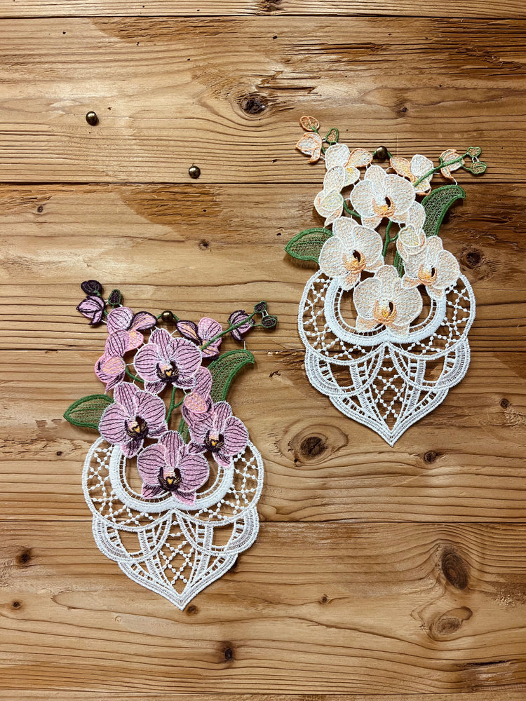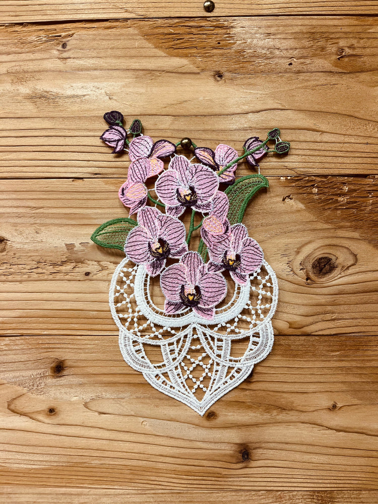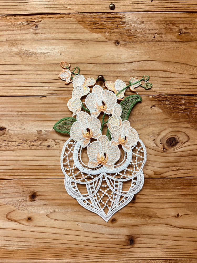 Decoro in pizzo semi rigido da attaccare ai vetri delle finestre con asola per poter infilare la ventosa.