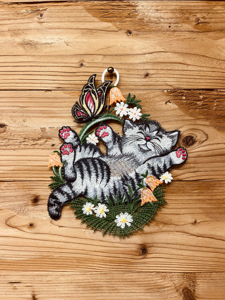 Decoro in pizzo semi rigido da attaccare ai vetri delle finestre con asola per poter infilare la ventosa.