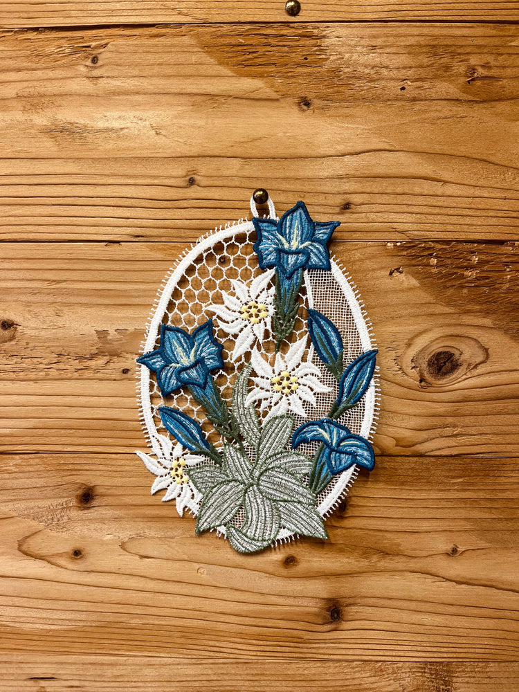 Decoro in pizzo semi rigido da attaccare ai vetri delle finestre con asola per poter infilare la ventosa.