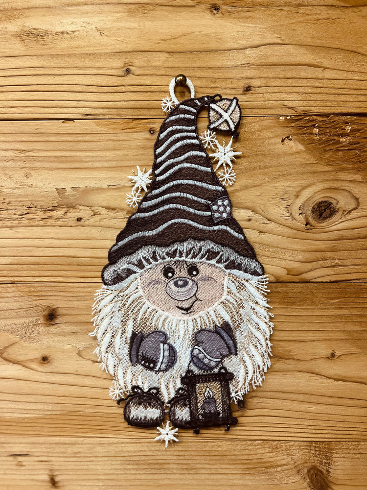 Decoro in pizzo semi rigido da attaccare ai vetri delle finestre con asola per poter infilare la ventosa.