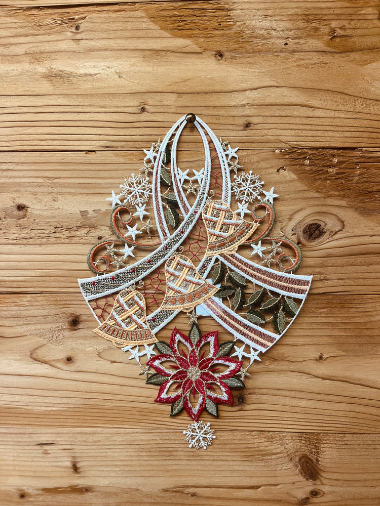 Decoro in pizzo semi rigido da attaccare ai vetri delle finestre con asola per poter infilare la ventosa.