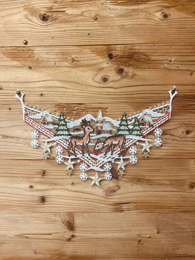 Decoro in pizzo semi rigido da attaccare ai vetri delle finestre con asola per poter infilare la ventosa.