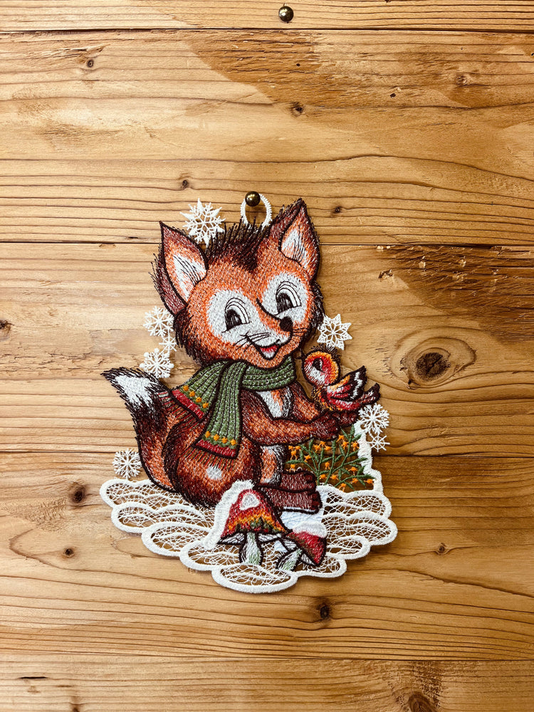 Decoro in pizzo semi rigido da attaccare ai vetri delle finestre con asola per poter infilare la ventosa.
