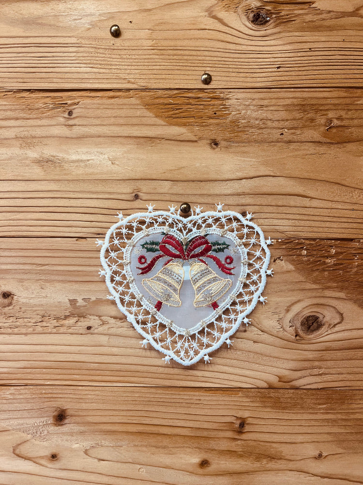 Decoro in pizzo semi rigido da attaccare ai vetri delle finestre con asola per poter infilare la ventosa.