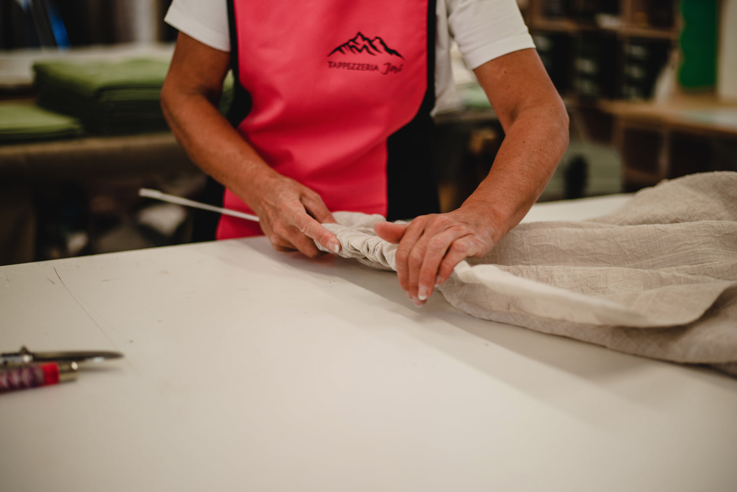 Tappezzeria e tendaggi, tessuti per la casa, complementi d’arredo e biancheria su misura. Il tutto realizzato da noi nel nostro laboratorio a Soraga e prima che esca dalle nostre porte tutto deve passare per il controllo qualità.