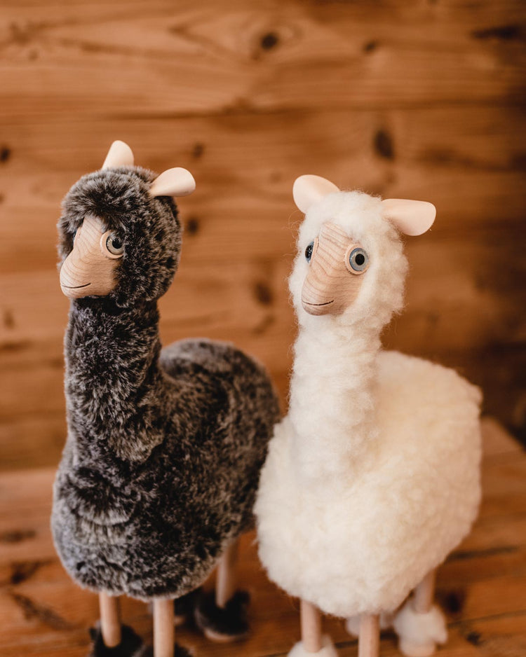 Mini alpaca in faggio e lana naturale. Disponibile in due varianti di colore.