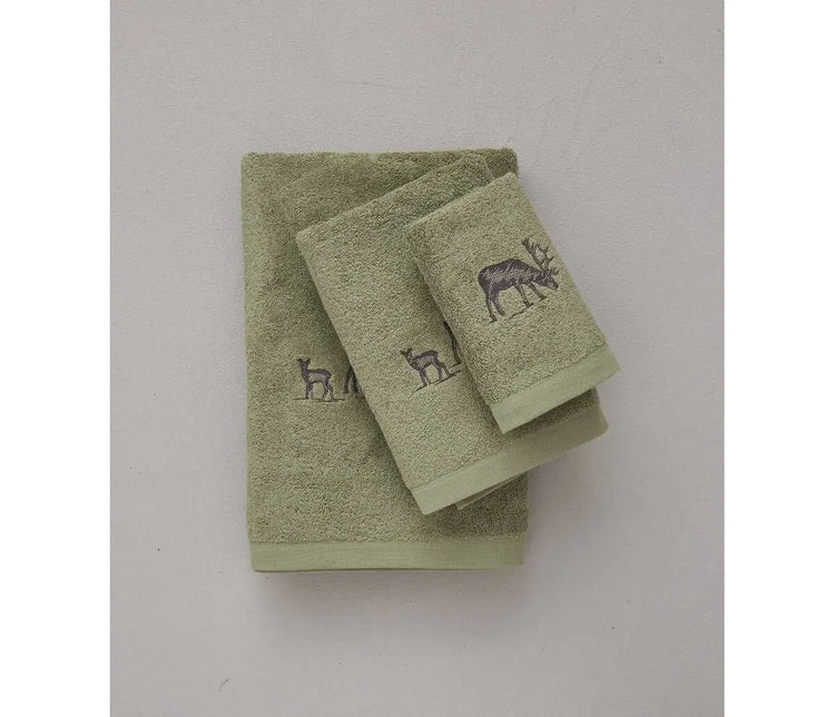 Asciugamani in morbido cotone con cervi ricamati in contrasto.