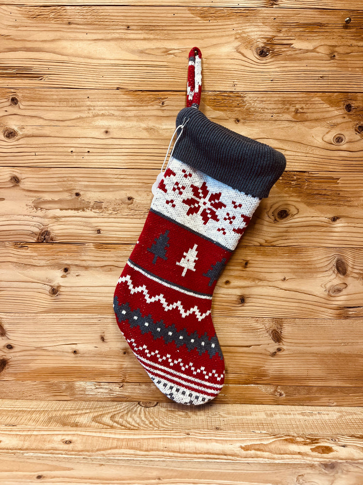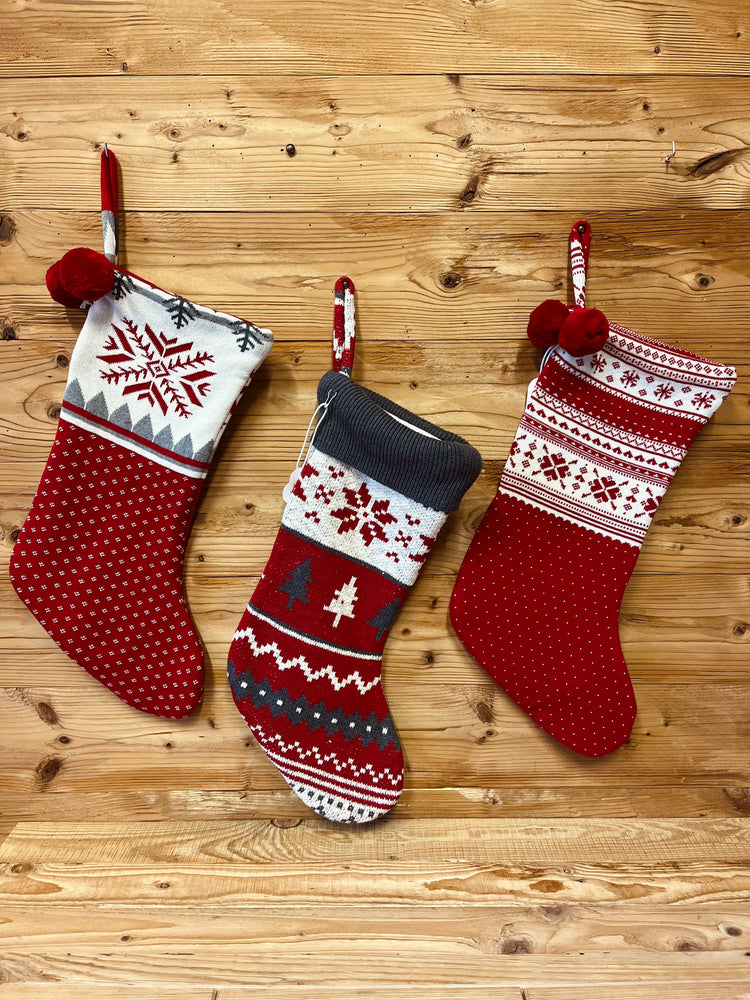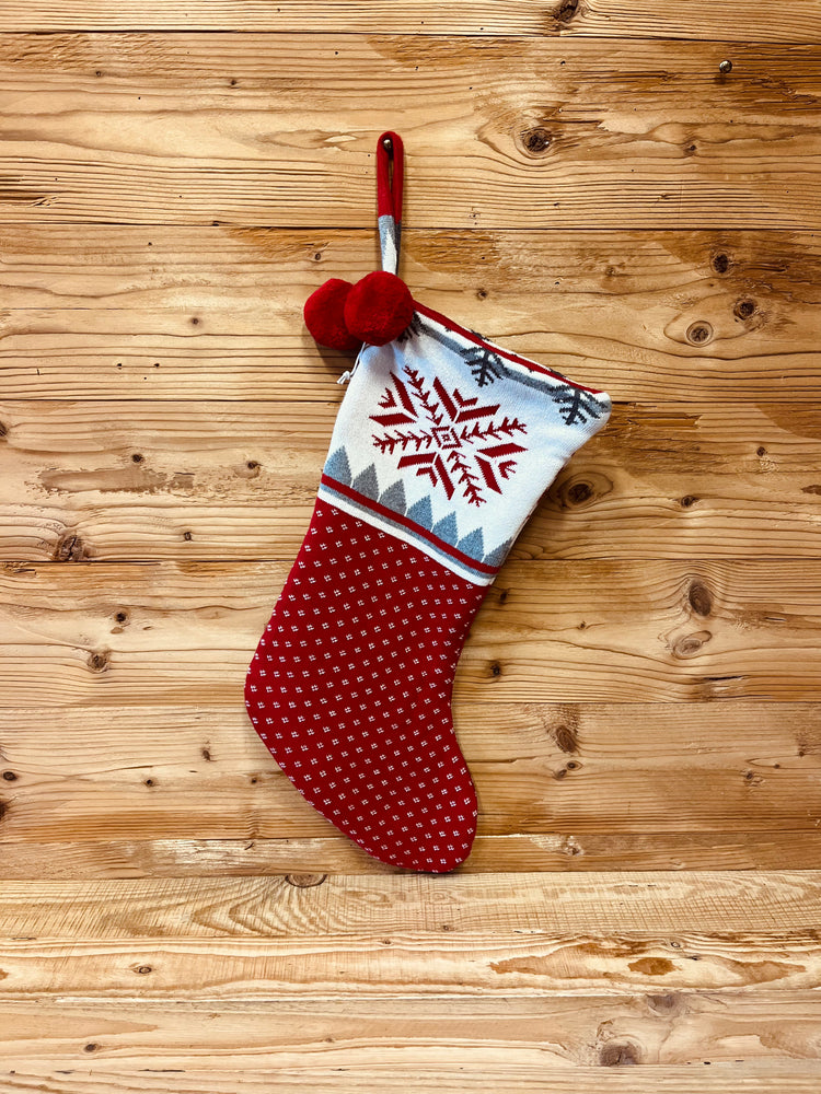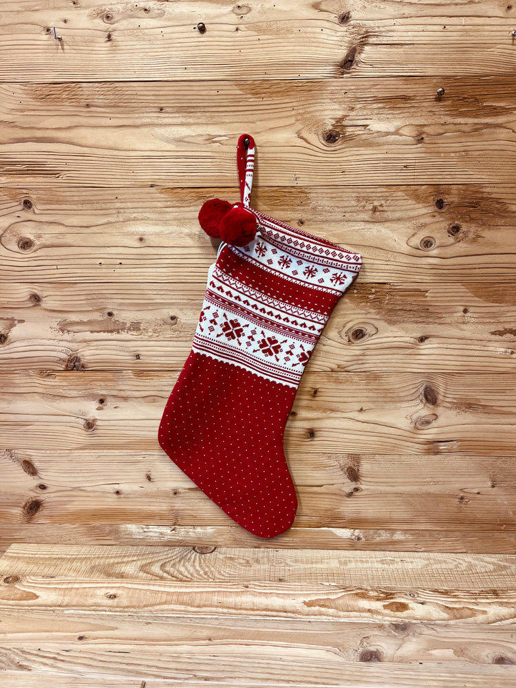 Calza da appendere al camino in stile norvegese con risvolto e laccetto per poterlo appendere.