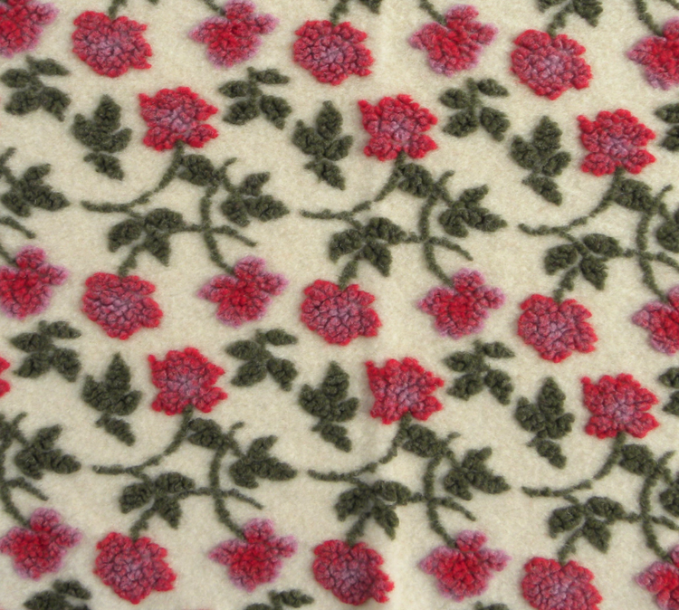 Coperta in lana bollita Made in Italy con disegno di geraneo in rilievo.