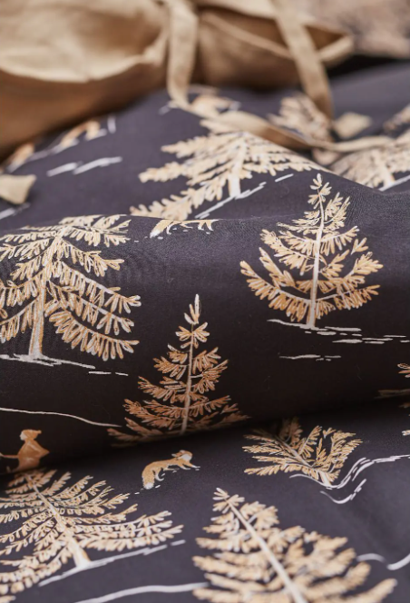 Con questo copripiumino raccontiamo la storia dell'inverno che dona alla natura una dimensione selvaggia e misteriosa.