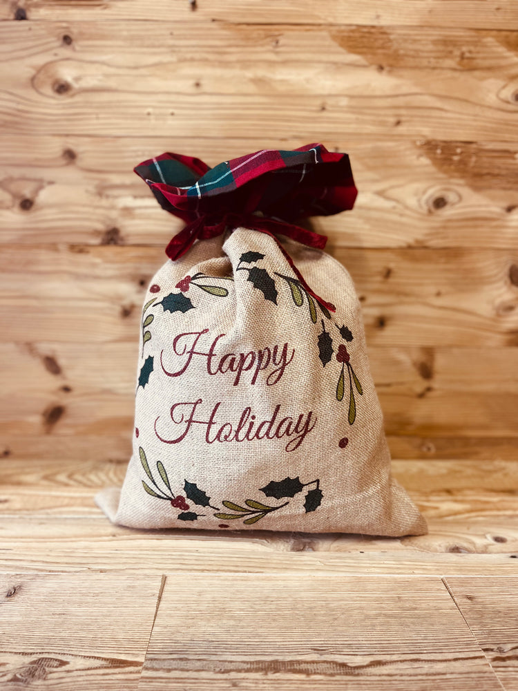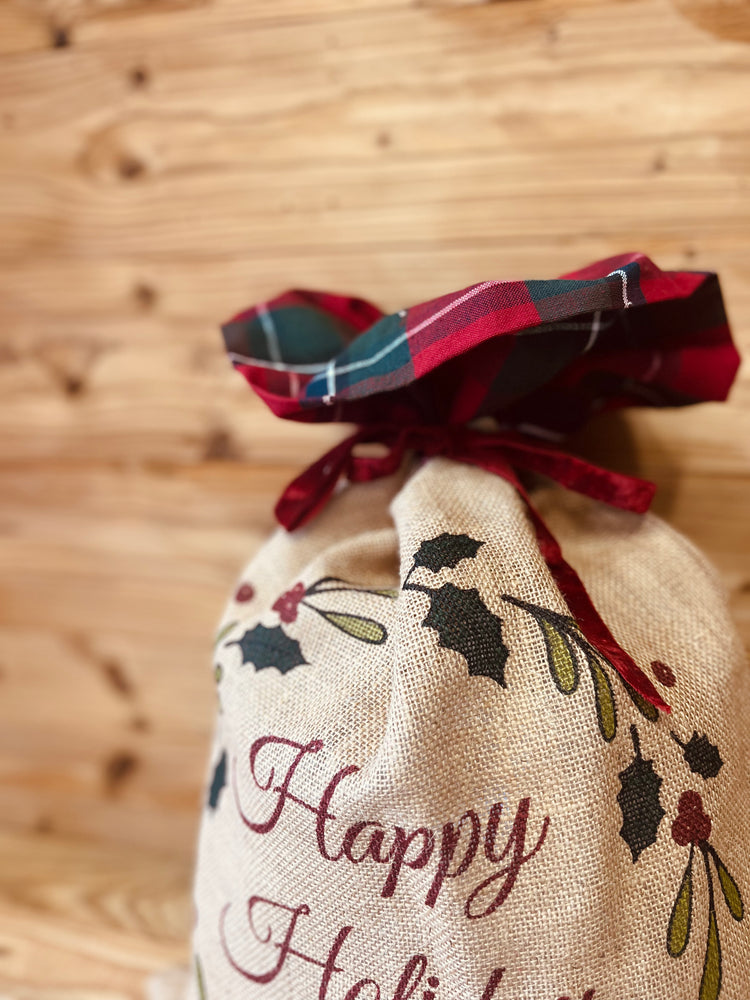 Borsa in Juta cilindrica con manici e disegno di un busto di cervo.