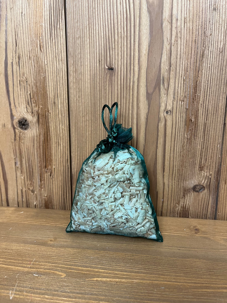 Sacchettino in organza con trucioli di cirmolo dal delicato profumo.