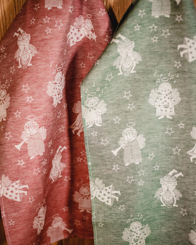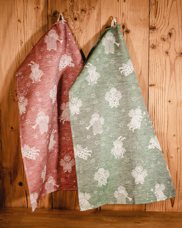 Strofinaccio in misto lino e cotone con motivo natalizio.