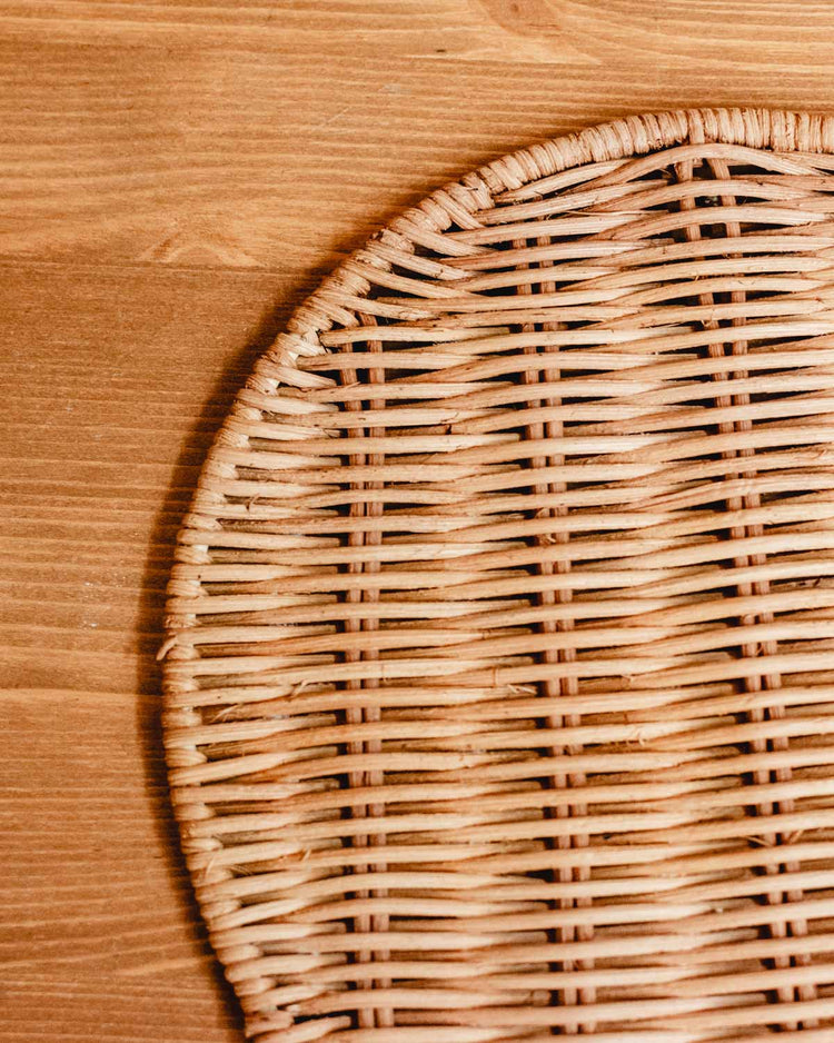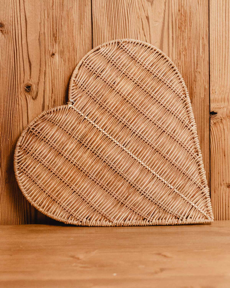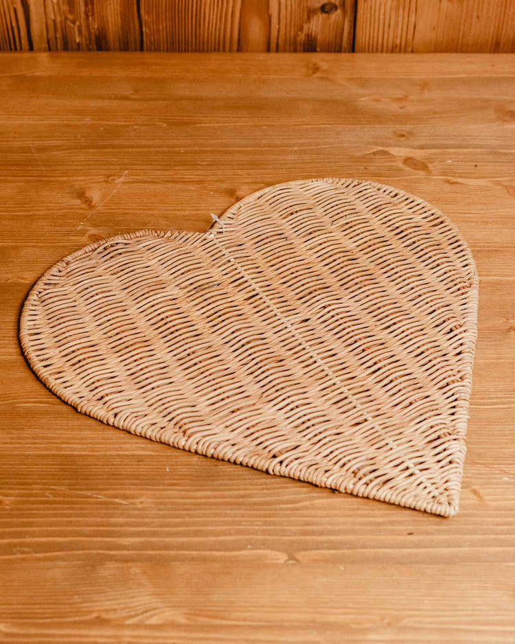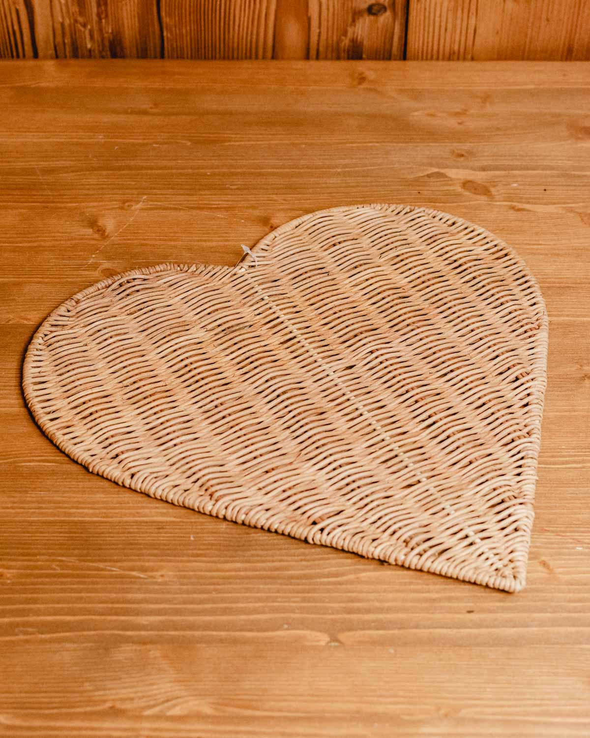 Tovaglietta o sotto piatto romantico a forma di cuore in vimini intrecciato.